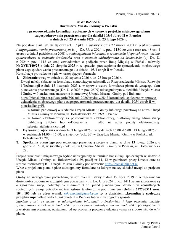 Burmistrz Miasta i Gminy w Pieńsku ogłasza konsult...